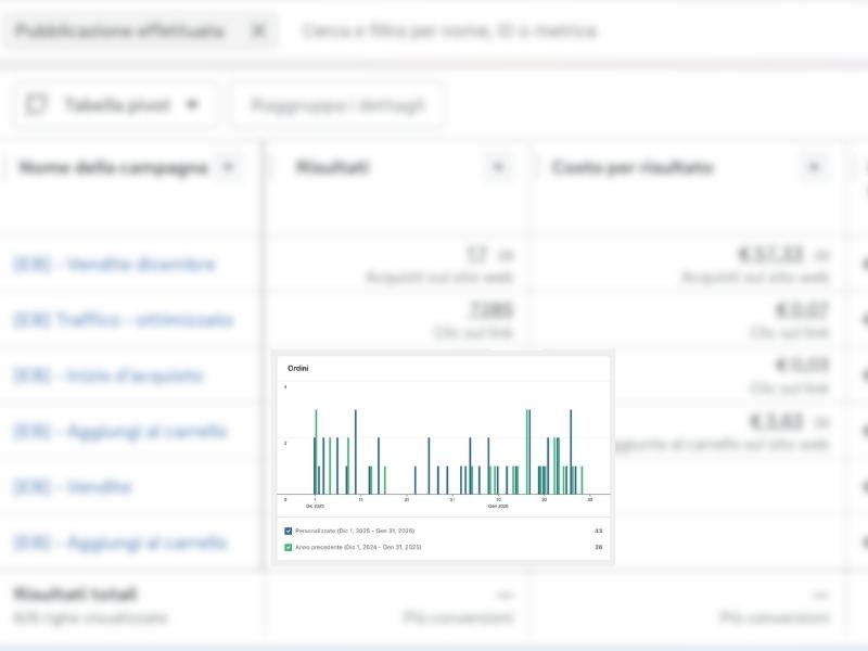 Agisco: Monitoro costantemente per ottimizzare non solo il costo per acquisto, ma la qualità del cliente acquisito. Il mio obiettivo è il tuo profitto, non la spesa pubblicitaria.